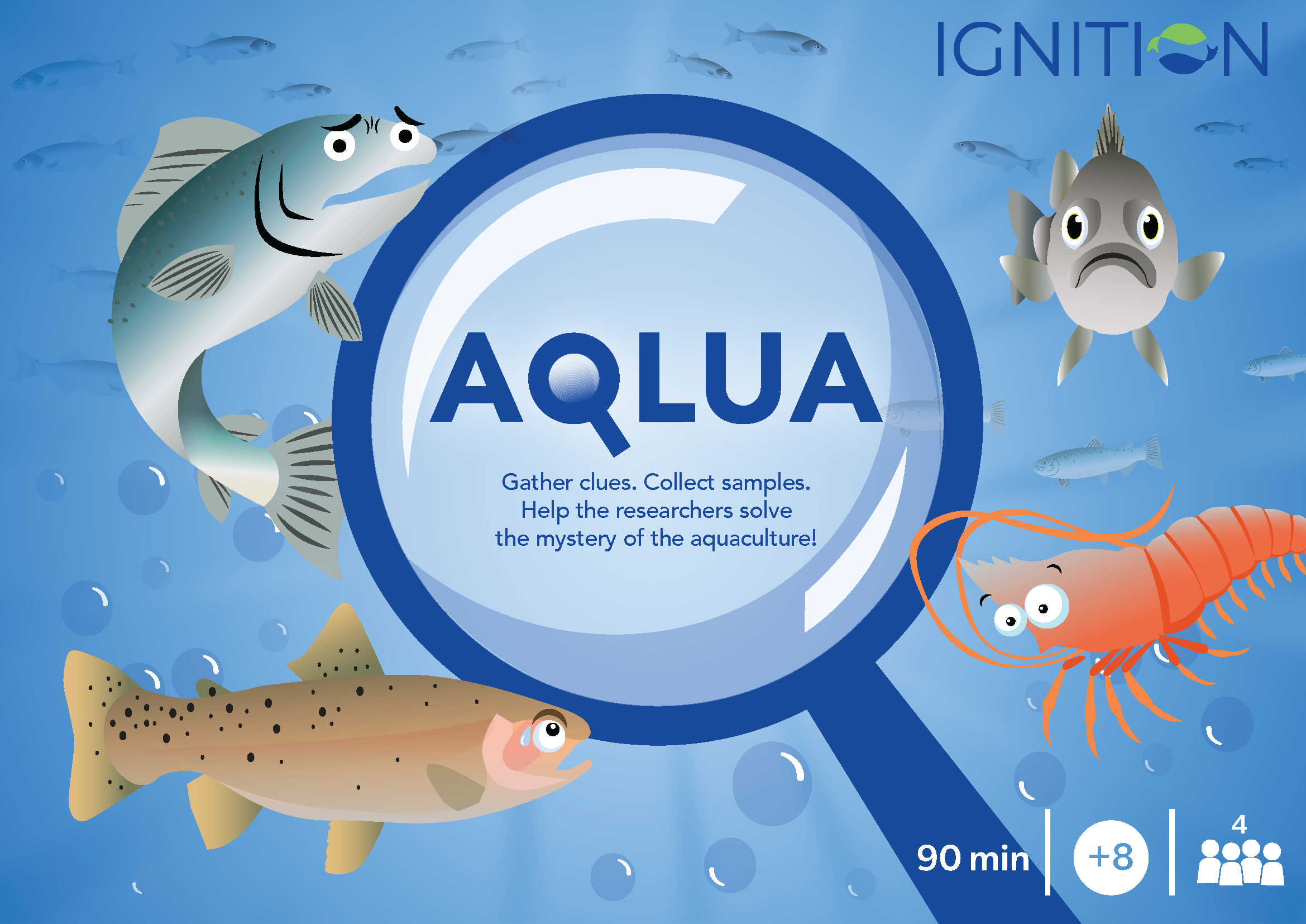 Step into the world of aquaculture with AQLUA—a thrilling Cluedo-style game where you help researchers solve the mystery of a sick animal in an aquaculture station. Gather clues, investigate the cause, and discover how to detect the sick animal—print, cut, and play your way to uncover the truth!